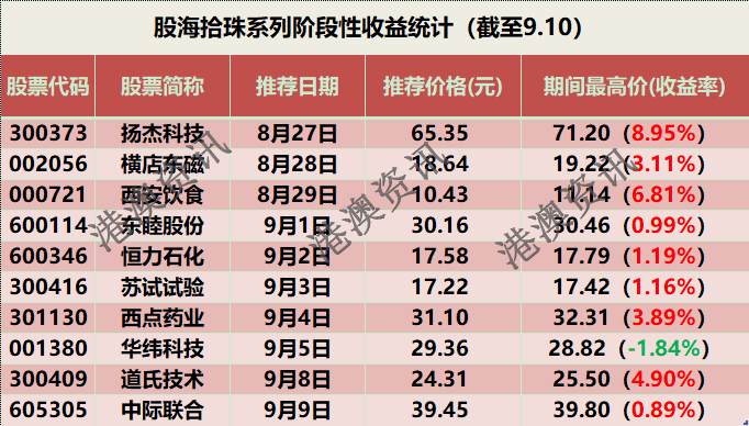 附表:往期股海拾珠系列阶段性收益统计一览(截至9.10)